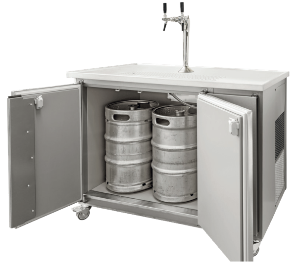 Balcão de cerveja móvel MT2 com refrigeração contínua para 2 barris de cerveja